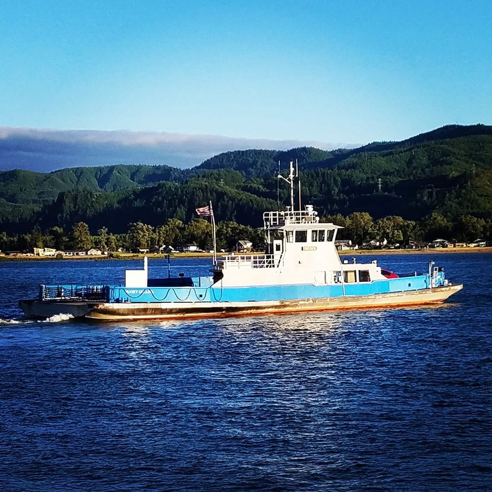 The Oscar B. is the last ferry running on the Lower Columbia River. The ferry runs between Puget Island, Cathlamet, WA to Westport, OR. It travels 365 days a year and carries passengers on foot, in vehicles and on bikes. It leaves the WA side on the hour beginning at 5 AM until 10 PM. It leaves the OR side at the quarter hour past starting at 5:15 AM to 10:15 PM. It’s a great way to see the Columbia River! Cash Only!