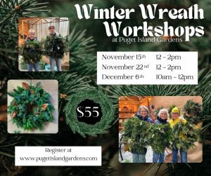 « All Events This event has passed. Winter Wreath Workshop November 15 @ 12:00 pm - 1:00 pm « Youth Dance Class Library Author Talks: Cathy Cruikshank » Add to calendar Google Calendar iCalendar Outlook 365 Outlook Live Details Date: November 15 Time: 12:00 pm - 1:00 pm Organizer Puget Island Gardens Phone 206-390-4980 Email info@pugetislandgardens.com View Organizer Website Venue Puget Island Gardens 520 SR 409 Cathlamet, 98612 + Google Map Phone 206-390-4980