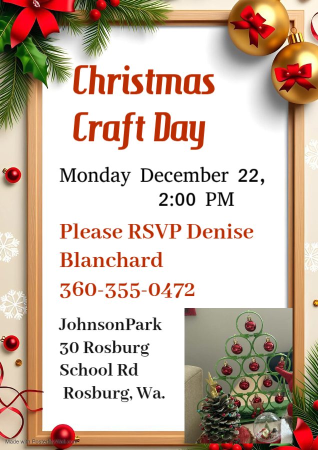 Pioneer Center 125 Columbia Street, CathlametDecember 13, 4 pm (doors open at 3:30pm) FA LA LA, Christmas Variety Show and Community Sing-A-Long Donations to support the Pioneer Center