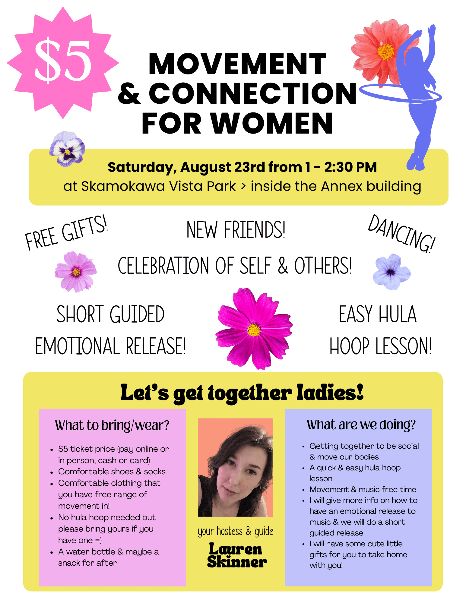 Vista Park 5 Vista Park Rd, Skamokawa, WA, United StatesThis event is an opportunity for women of Cathlamet to have some social time and connect with our bodies! There will be social time to get to know each other, […]